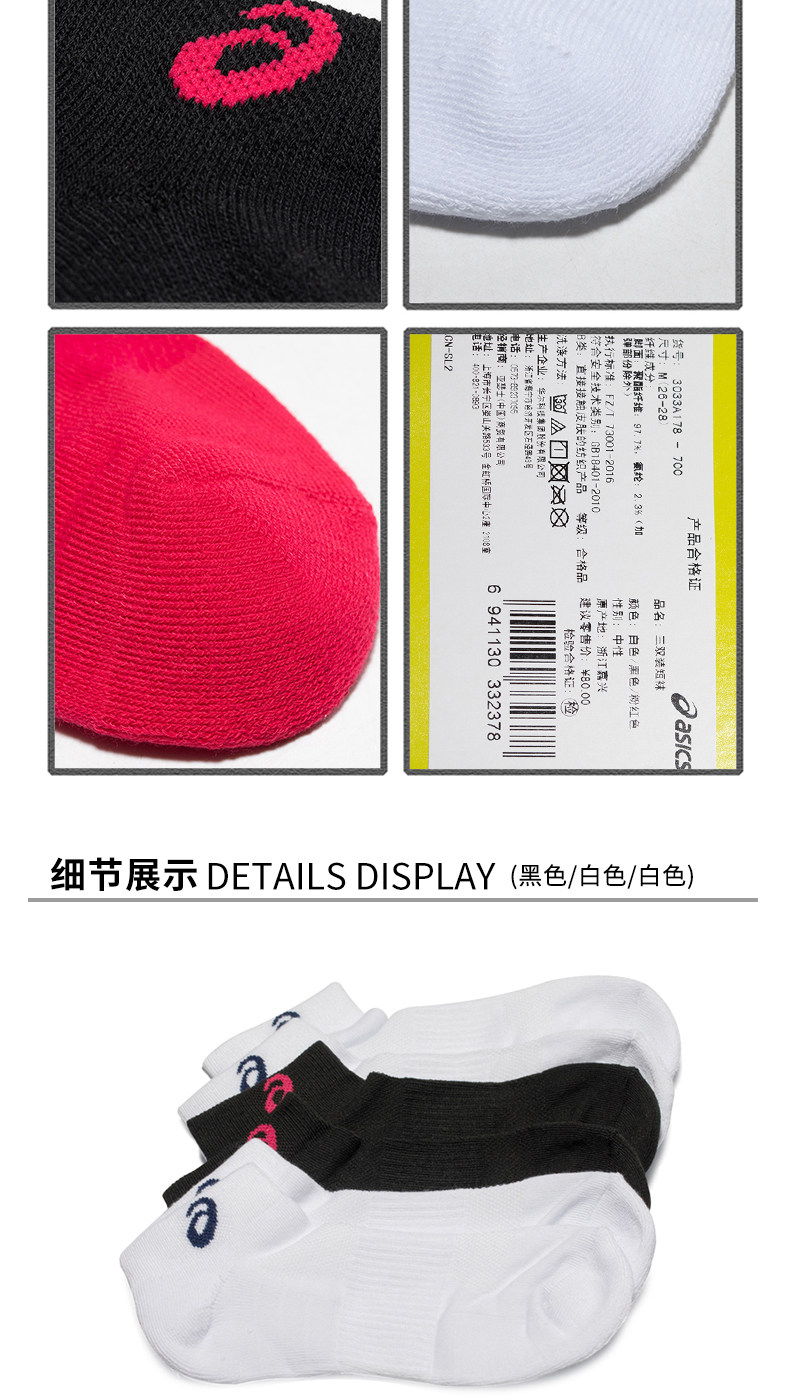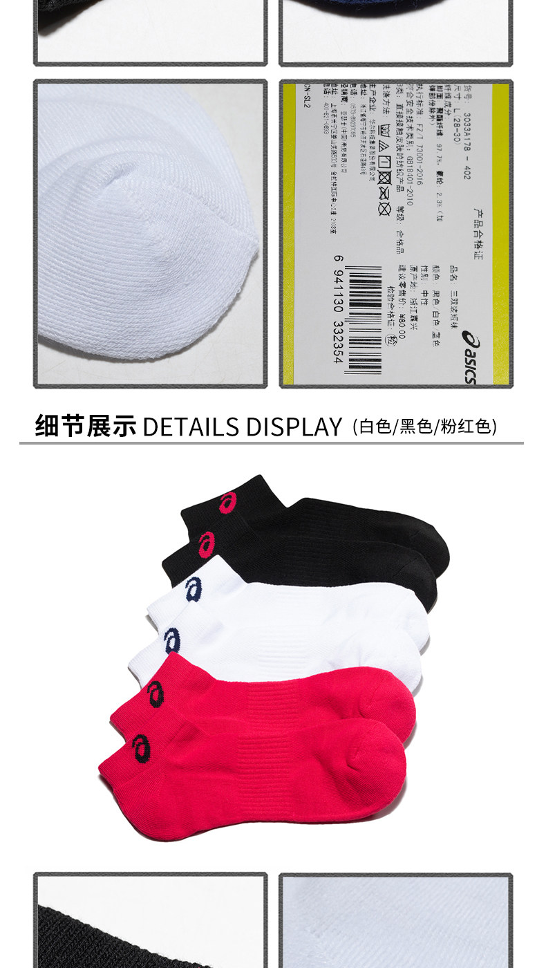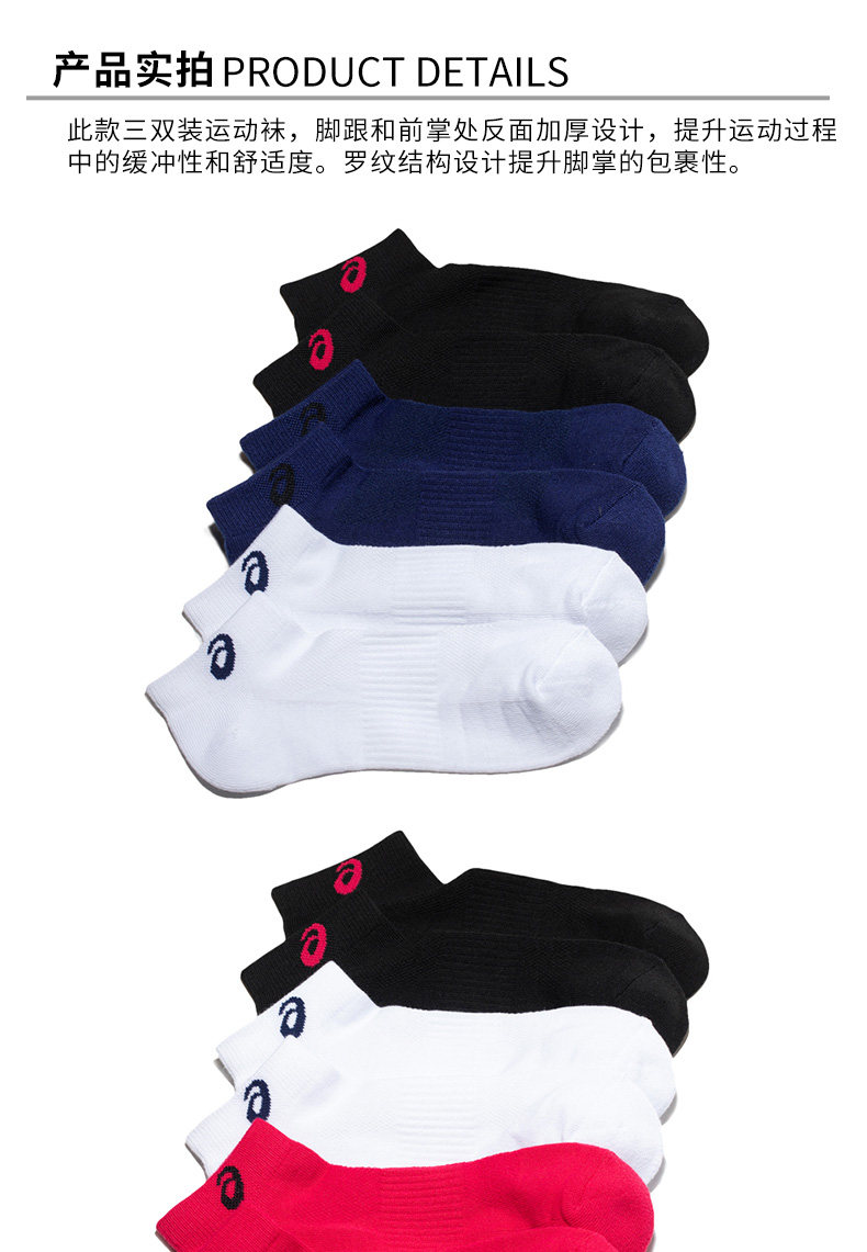 Asics Asics Три пары носков в носках мужчин и женских спортивных носков.