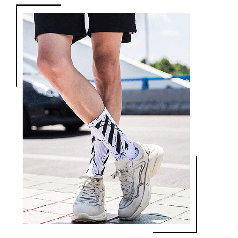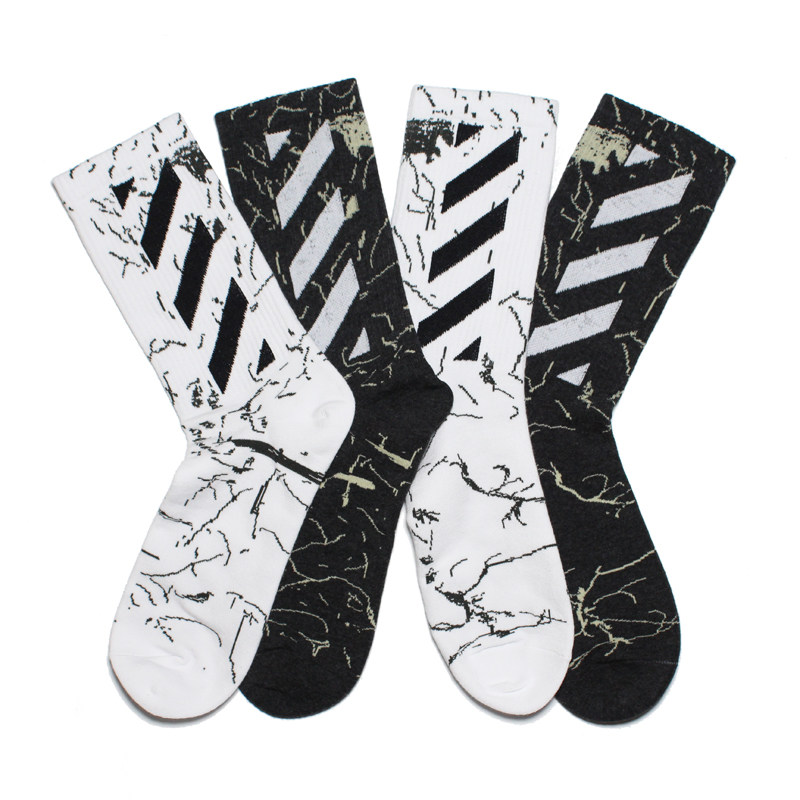 Хлопковые носки, белые мраморные баскетбольные гольфы, средней длины
