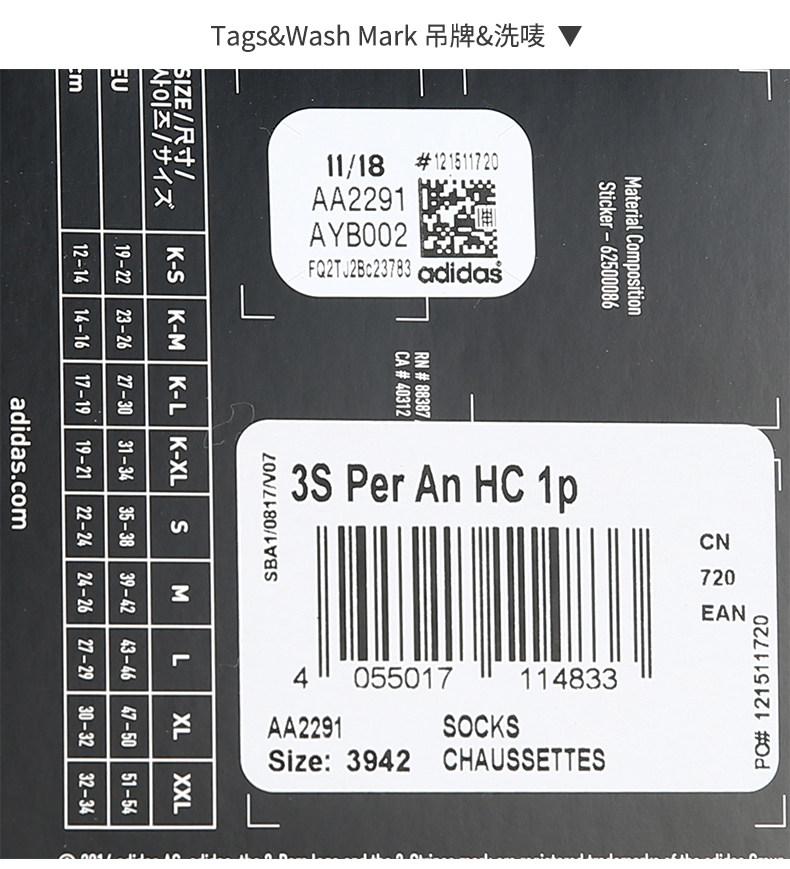 Adidas/阿迪达斯 Подлинные 3S на HC 1P Мужчины и женщины обучают спортивные носки AA2291 AA2291