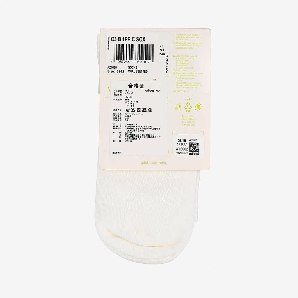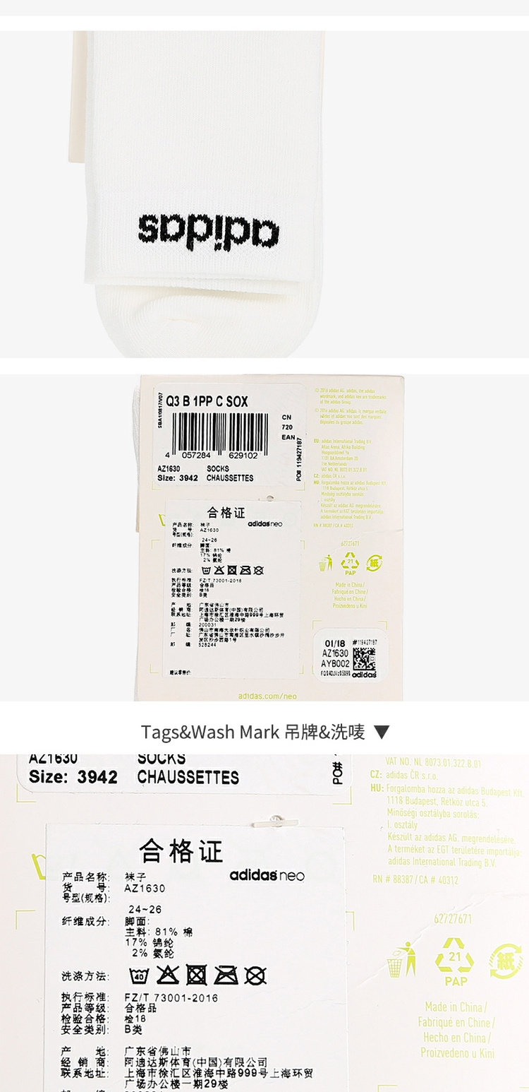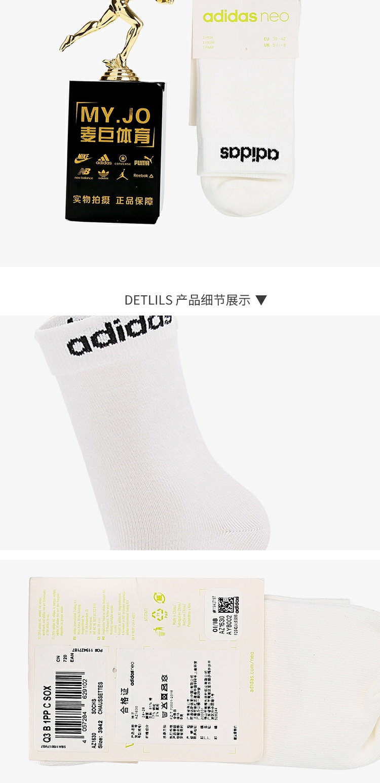 Adidas/阿迪达斯 Подлинный Q3 B 1PP C SOX Мужские и женские повседневные тренировочные носки AZ1630