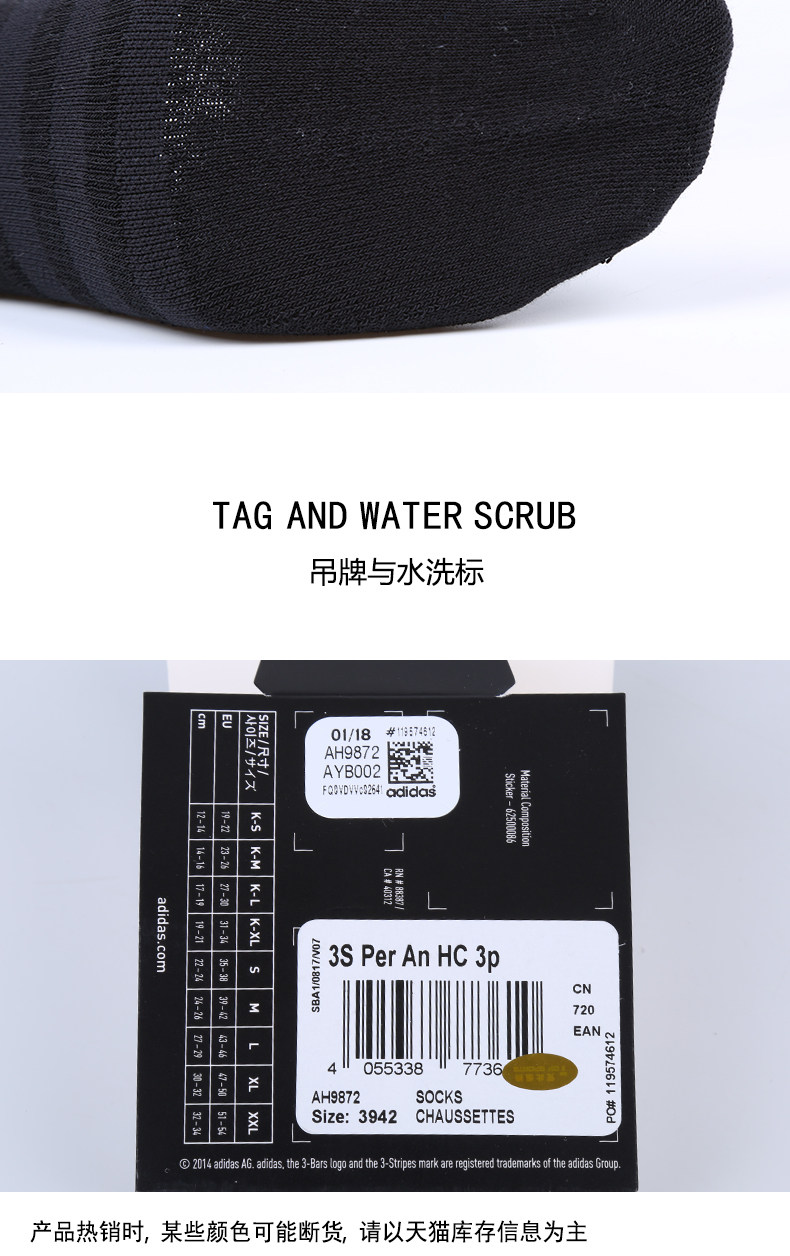 Adidas/阿迪达斯 Подлинные летние новые спортивные носки для спортивных носков AH9872 Новые мужчины AH9872