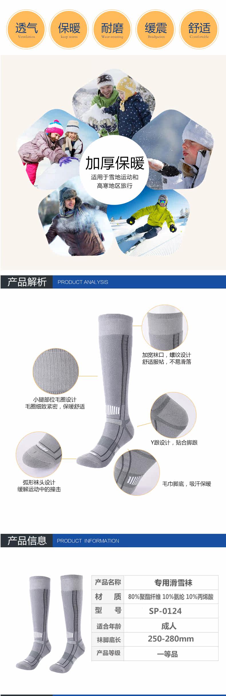 Лыжные дышащие носки, удерживающие тепло гольфы подходит для мужчин и женщин, увеличенная толщина