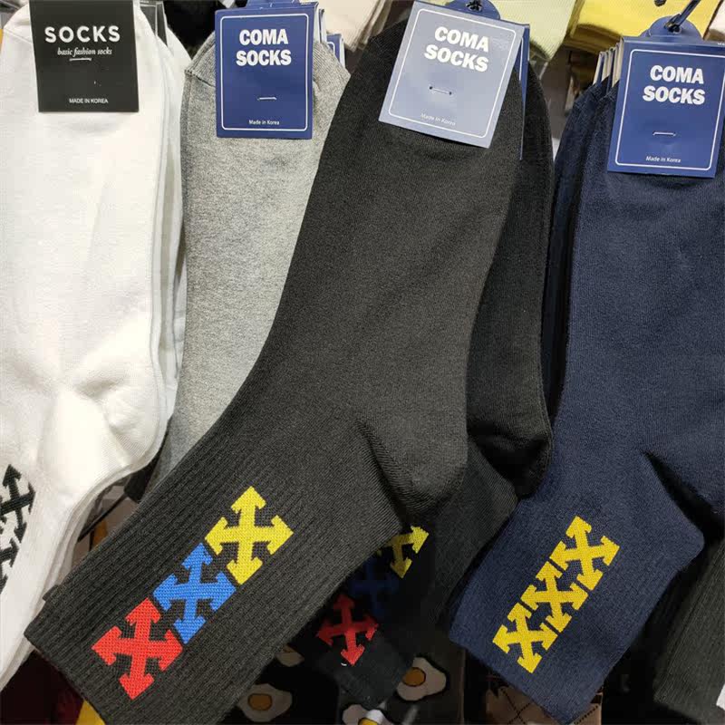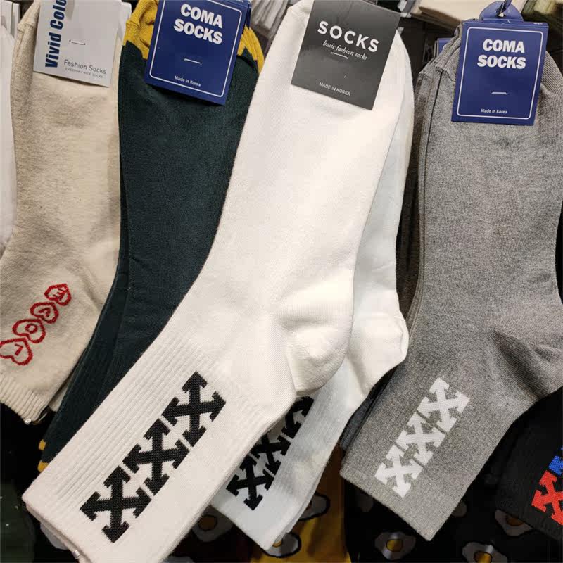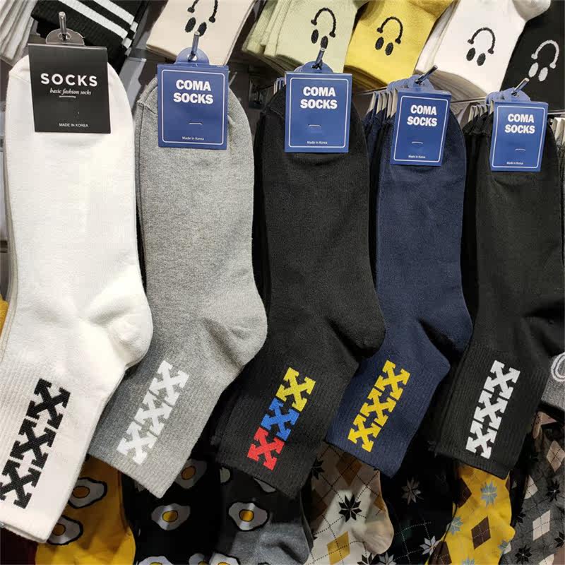 [Бесплатная доставка для трех пар] Настоящие корейские мужские носки, новые носки до середины икры со спортивным рисунком