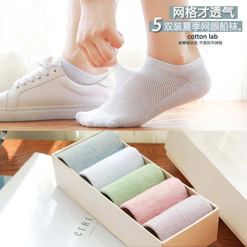 【Дышащие и защищенные от запаха 5 пар/10 пар】 летние тонкие женские носки для женских коротких носков с твердым цветом хлопковые носки для лодок сетка