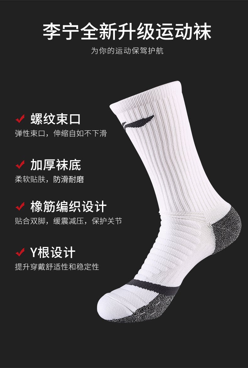 Li Ning, баскетбольные носки для мальчиков, средней длины, увеличенная толщина, для бега