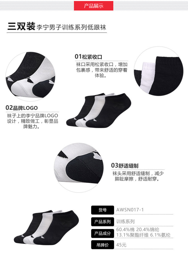 Носки Li Ning, мужские носки, новые летние короткие носки-лодочки, спортивные мужские носки, хлопковые носки, мужские элитные носки [3 пары]