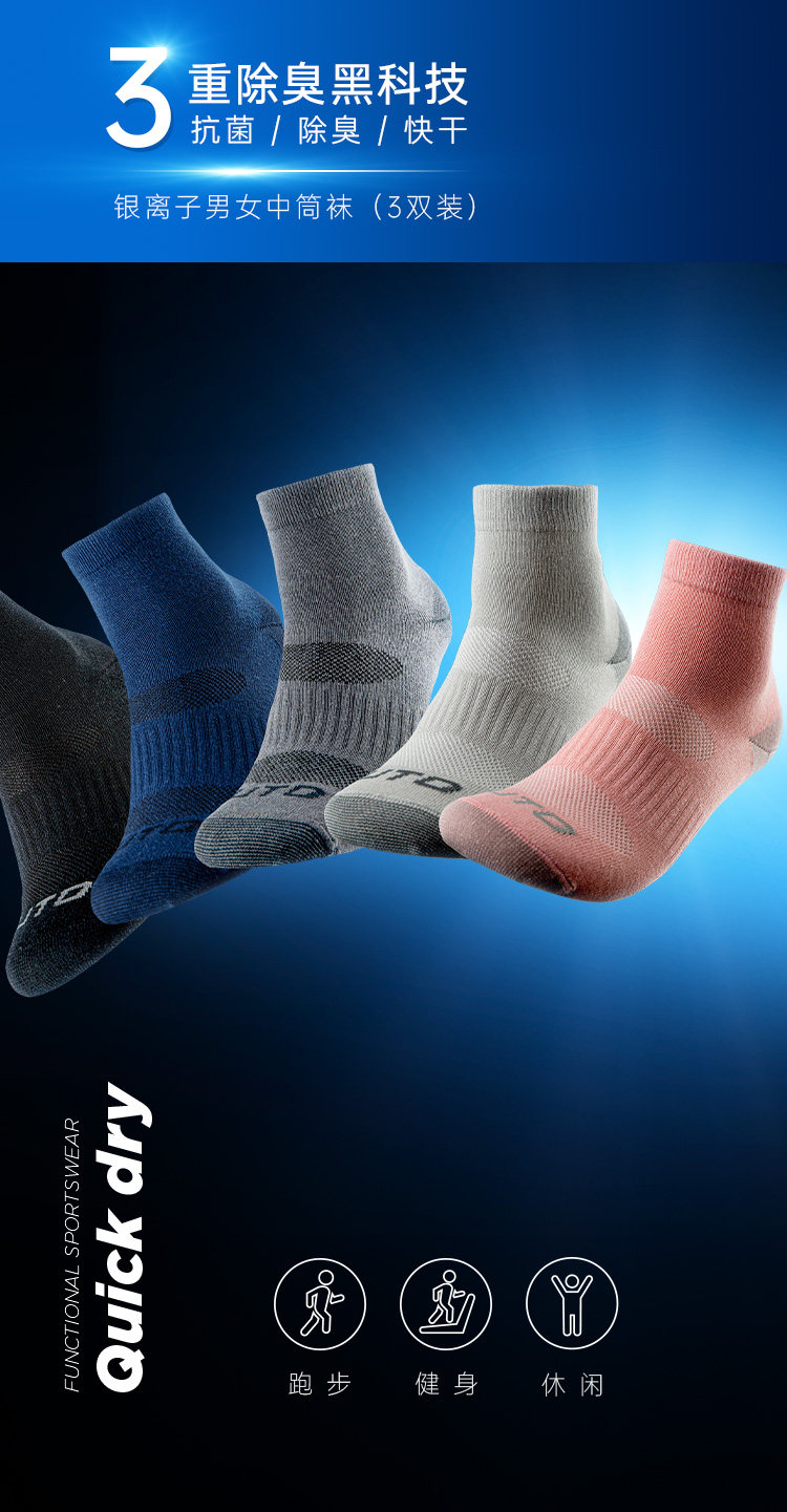 Uto Yutuen Series Silver Ion Professional Socks Мужчины и женщины быстро сухой сухой спорт в середине -носки и носки корабля (3 удвоения)