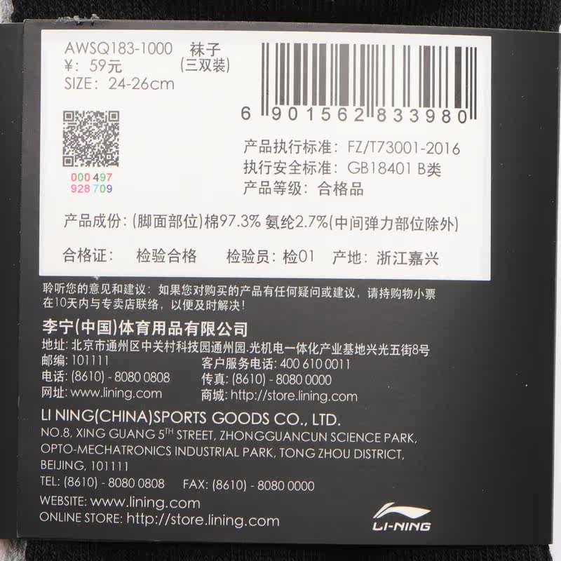 Li Ning, носки для тренировок, 2020