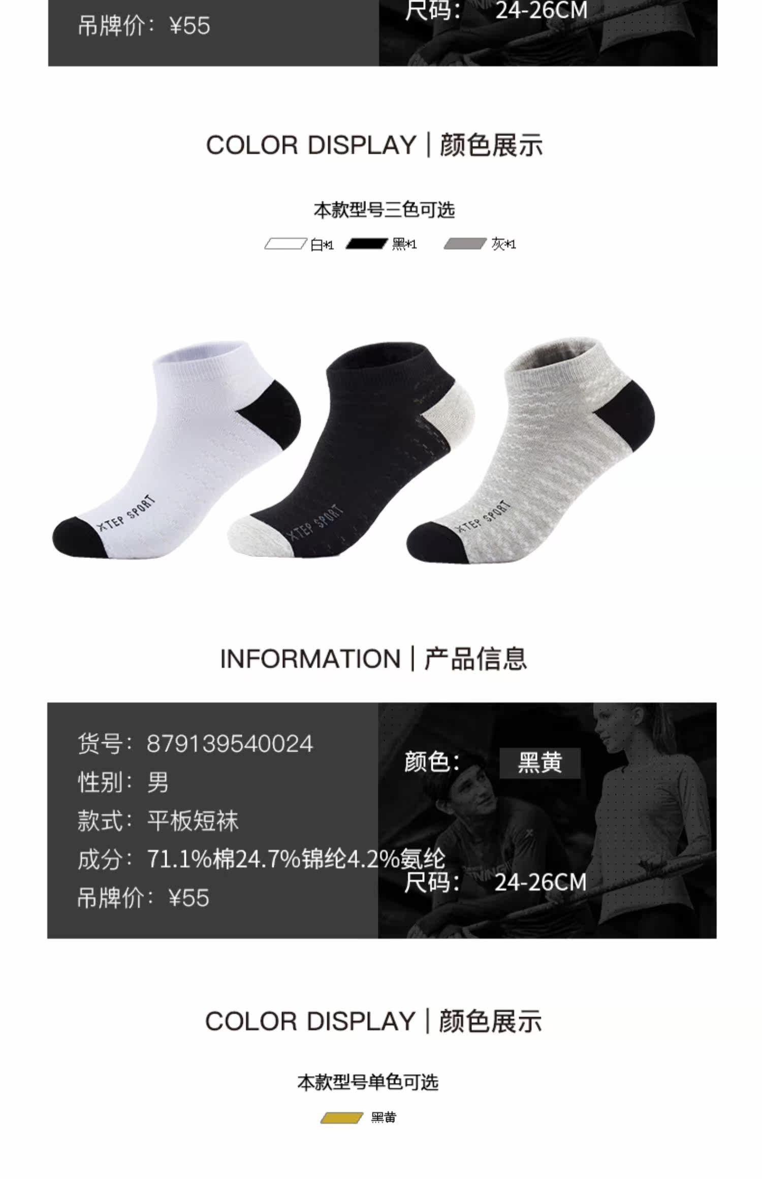 Xtep, осенние тонкие дышащие носки для отдыха