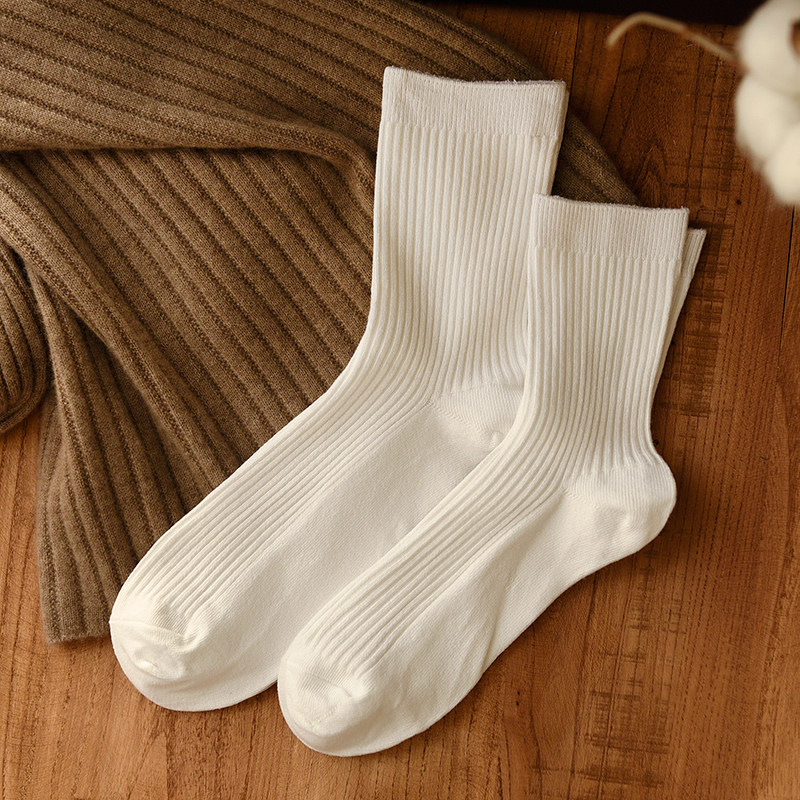 Хлопковые белые носки подходит для мужчин и женщин, средней длины, 97% хлопок