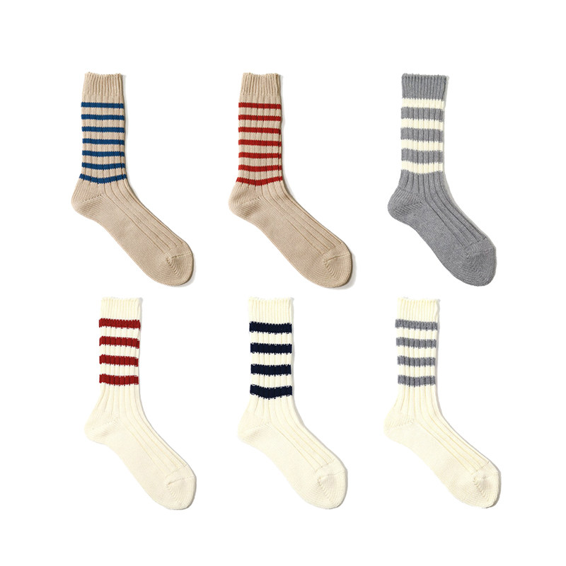 Decka тяжеловесные носки японские ретро -вязаные вязаные полосы