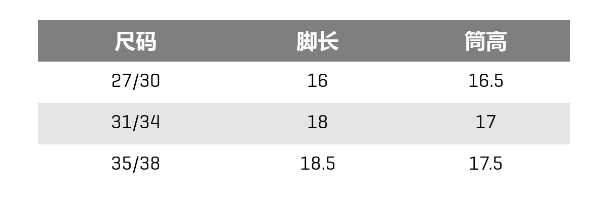 | Размер: | ЕС: 27-30 Спецификация: 15-16, ЕС: 31-34 Спецификация: 17-18, ЕС: 35-38 Спецификация: 19-20 |