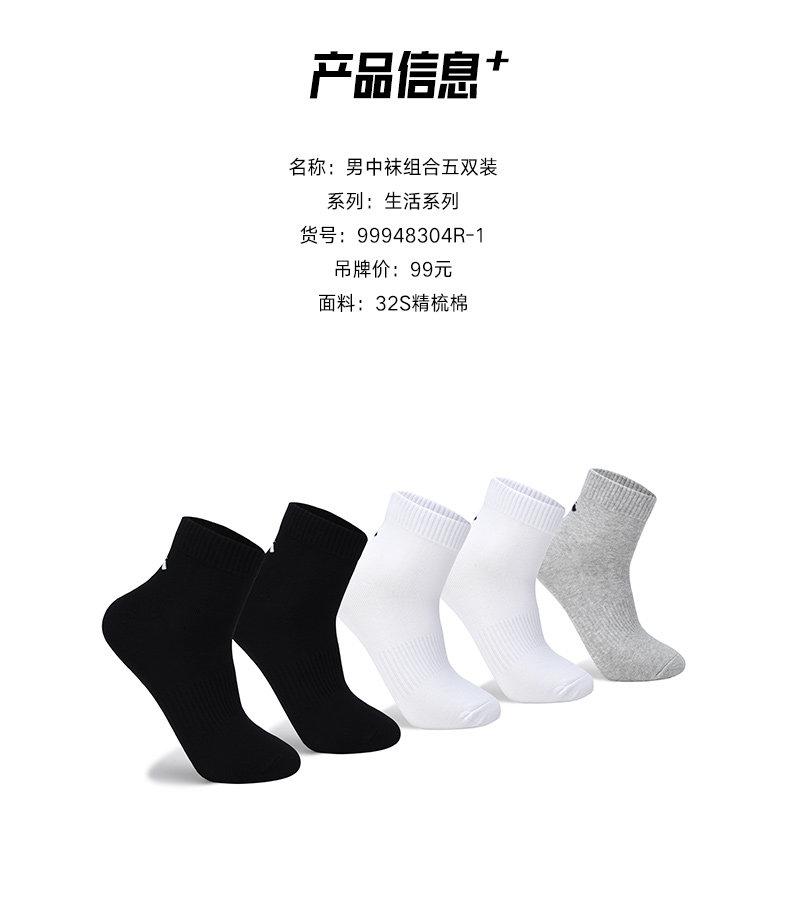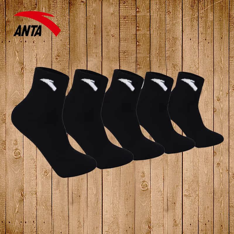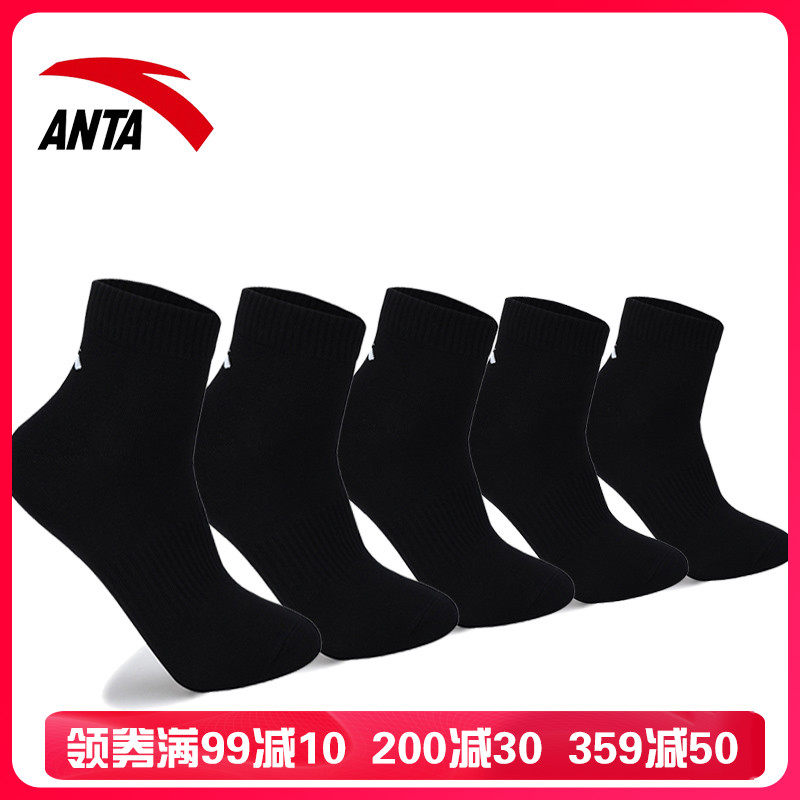 Anta Socks мужские носки Новые дышащие середины, пять пар хлопковых носков, короткие носки официальное веб -сайт флагманские черные спортивные носки мужчины