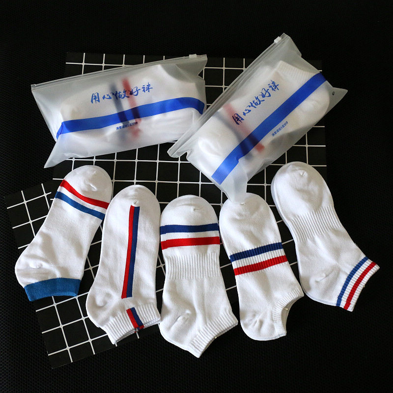 5 двойной весной и летних тонких спортивных носков мужские носки, носки, носки, цветные полоски в стиле белые, красные и синие комбинированные чулки