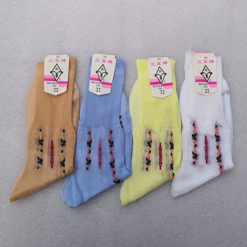 Три карты овец, тикающие цветочные нейлоновые чулки.22 см и 24 см.