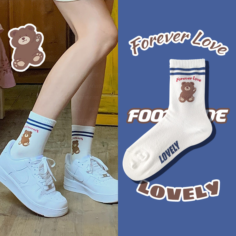 Милые белые демисезонные носки, с медвежатами, средней длины, коллекция 2021