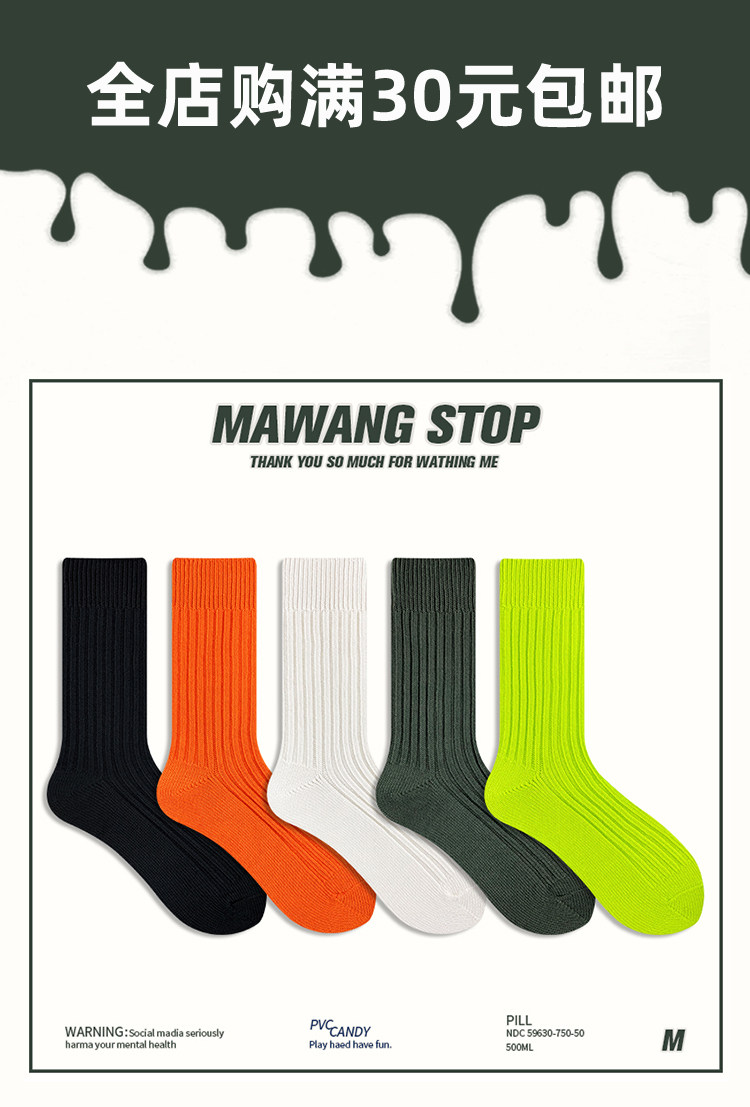 Японские цветные демисезонные носки, трендовые хлопковые гольфы подходит для мужчин и женщин, увеличенная толщина, средней длины