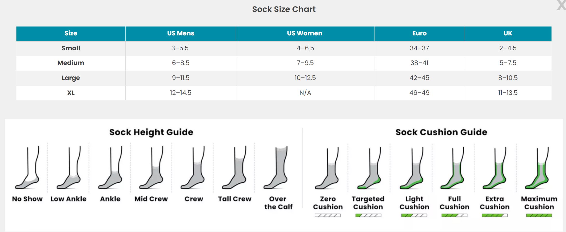Все носки имеют буферные колодки для повышения защиты и тепла.