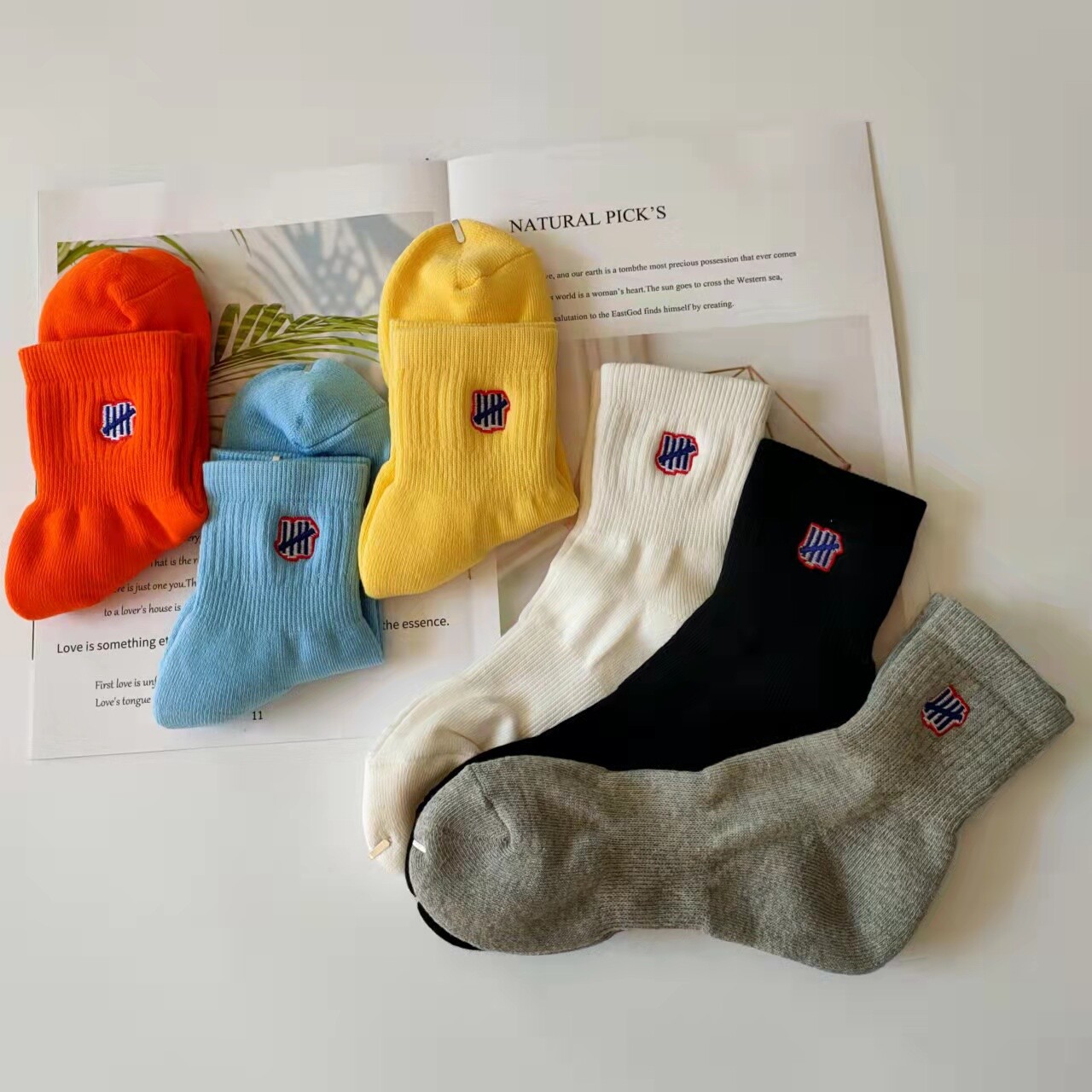 UNDEFEATED Хлопковые спортивные баскетбольные носки, японские и корейские, с вышивкой, увеличенная толщина, средней длины