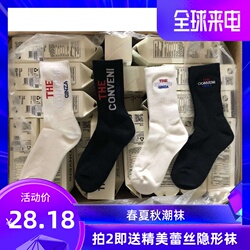 Летние ретро черные гольфы подходит для мужчин и женщин для отдыха, средней длины, с вышивкой