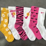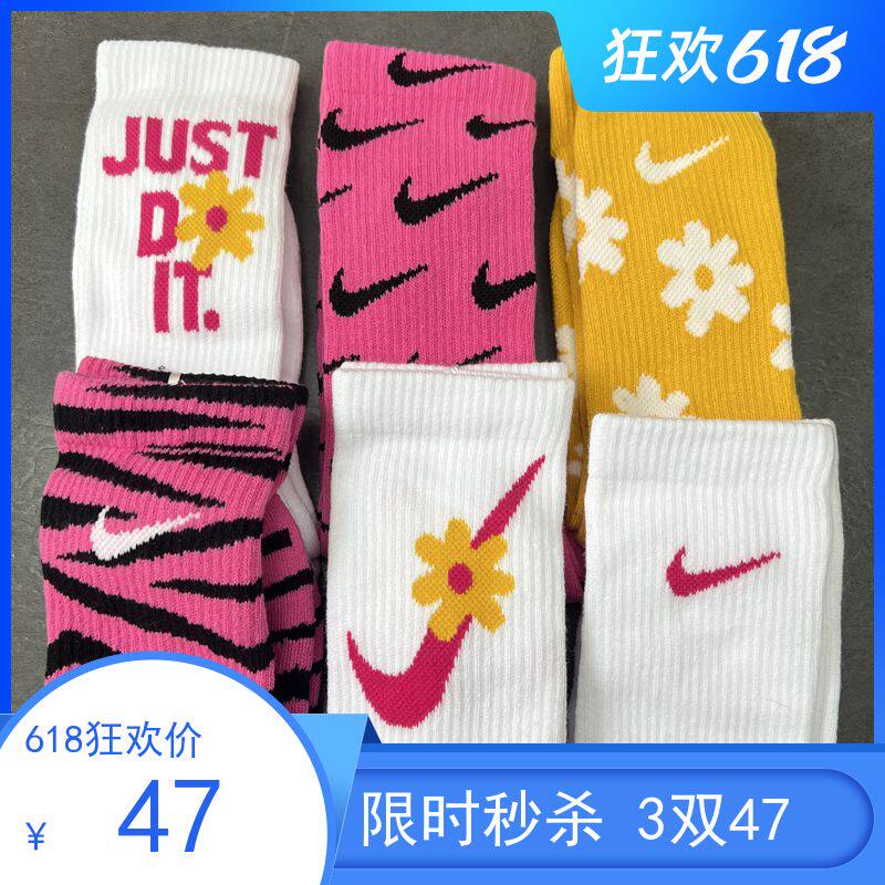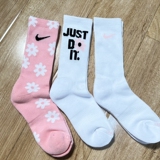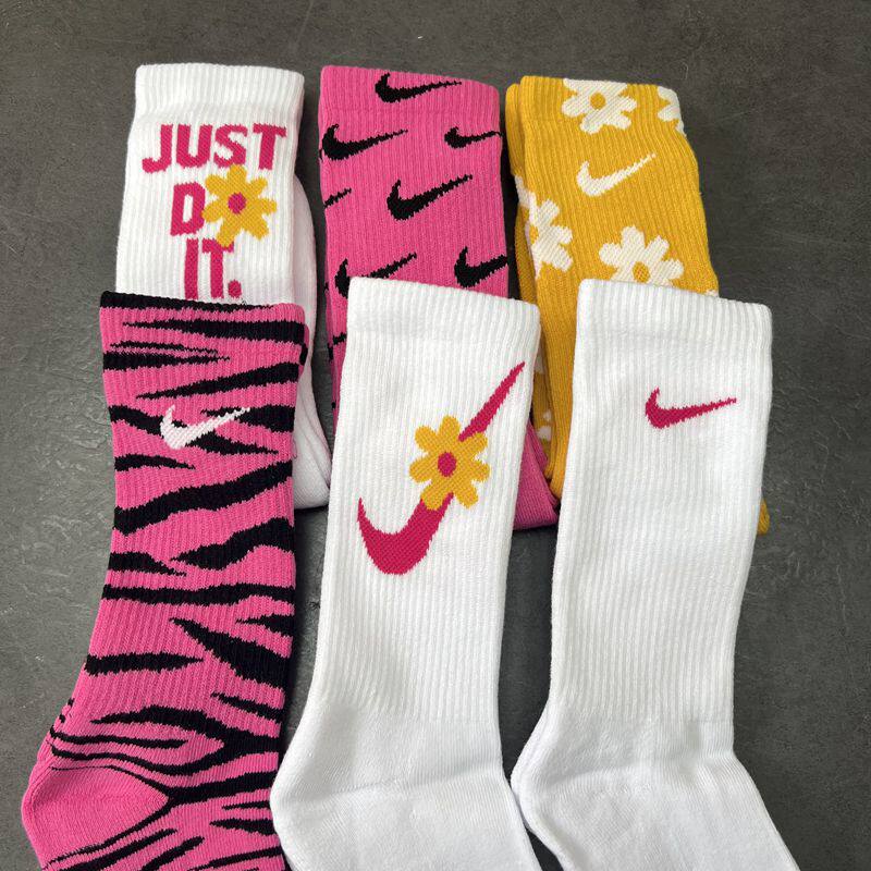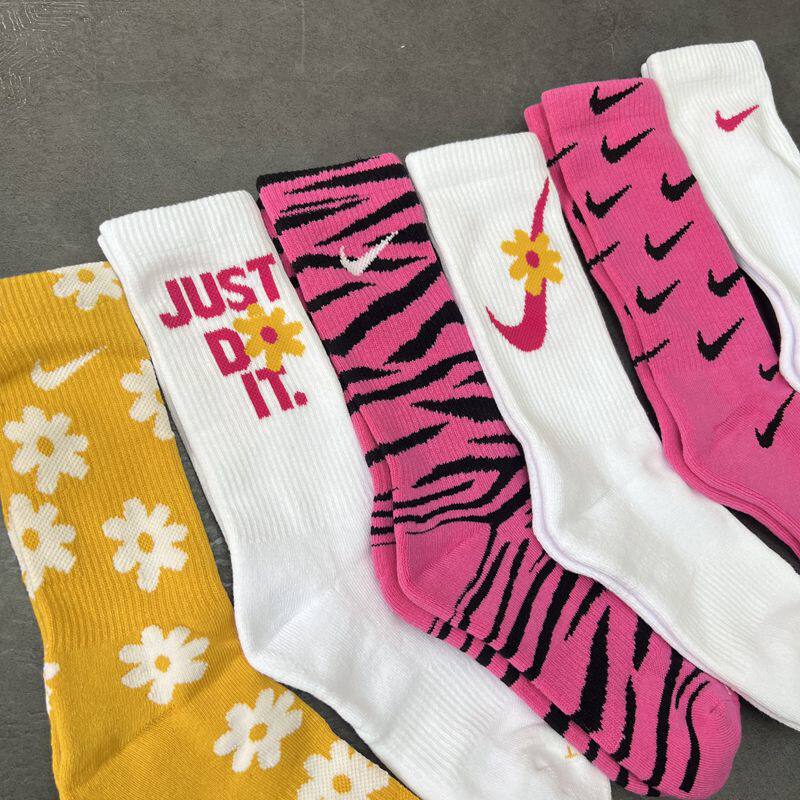Nike, розовые носки, высокие сапоги, гольфы, в цветочек