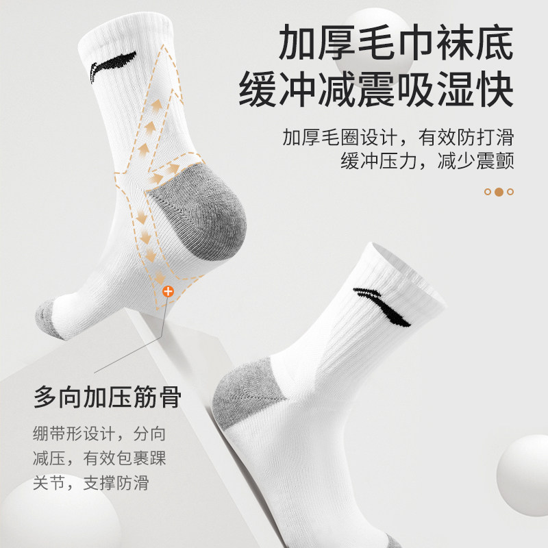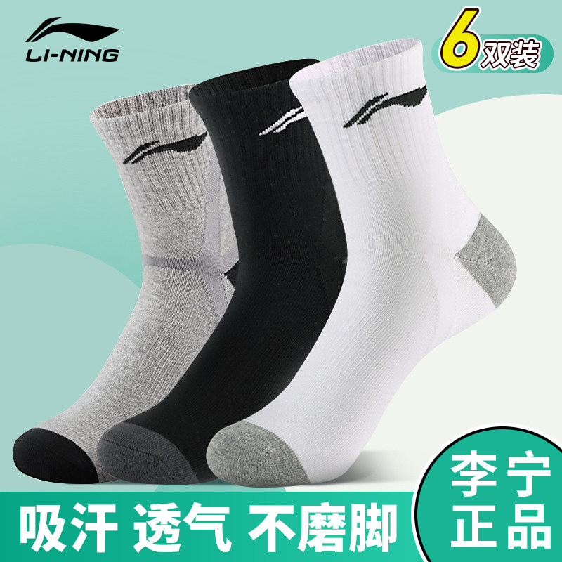 Li Ning, мужские баскетбольные носки для бадминтона, средней длины, впитывают пот и запах, для бега, увеличенная толщина