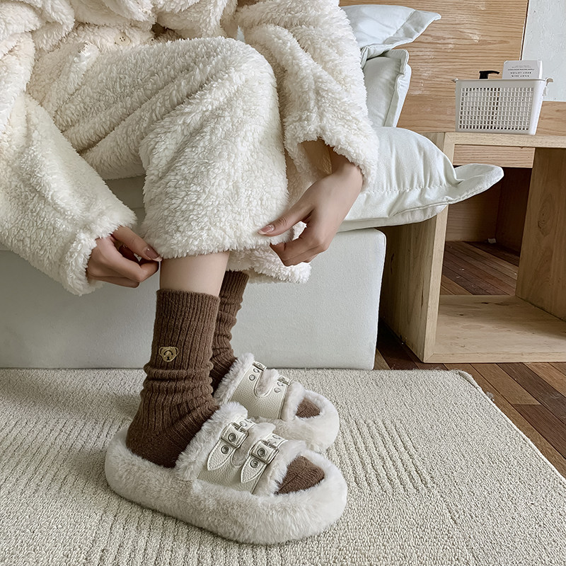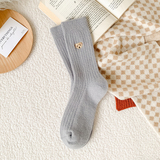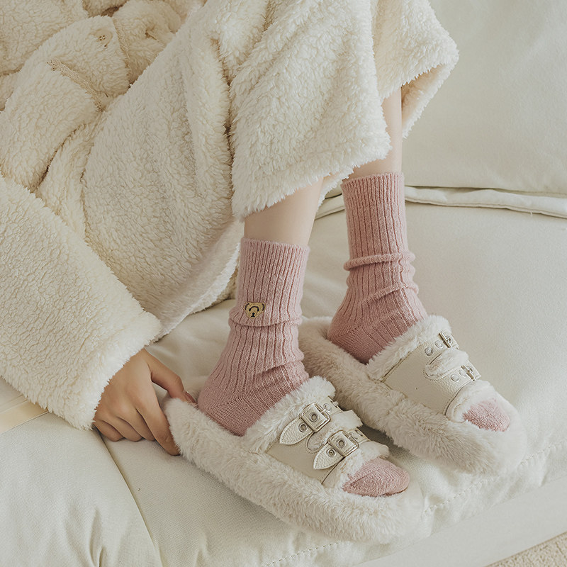 Шерстяные демисезонные носки, утепленные кашемировые гольфы, с вышивкой, средней длины, с медвежатами