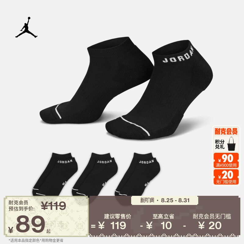 Чиновник Jordan Nike Jordan дышащие спортивные носки для спортивных лодок (3 пары) Падения быстросохрающейся тренировочной поддержки DX9656
