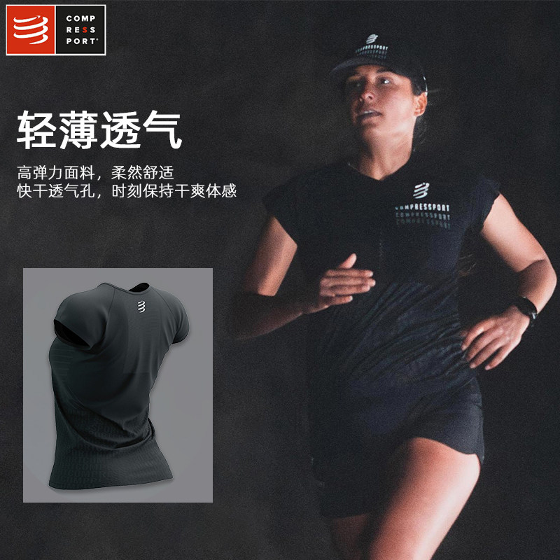 Compressport Limited Dark Version Speed Drying, дышащий солнцезащитный крем с коротким -уплотнением CS Women's Luck T -Frong Funning Fitness Comp
