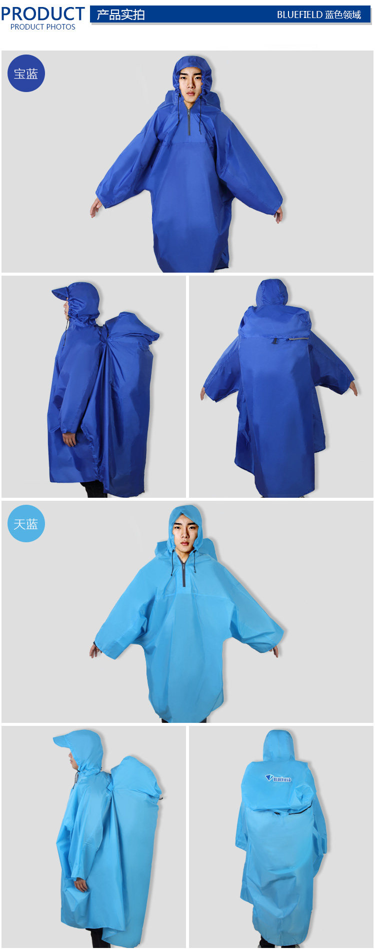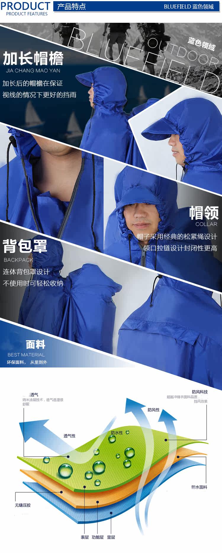 Синий дорожный дождевик для скалозалания подходит для пеших прогулок подходит для мужчин и женщин