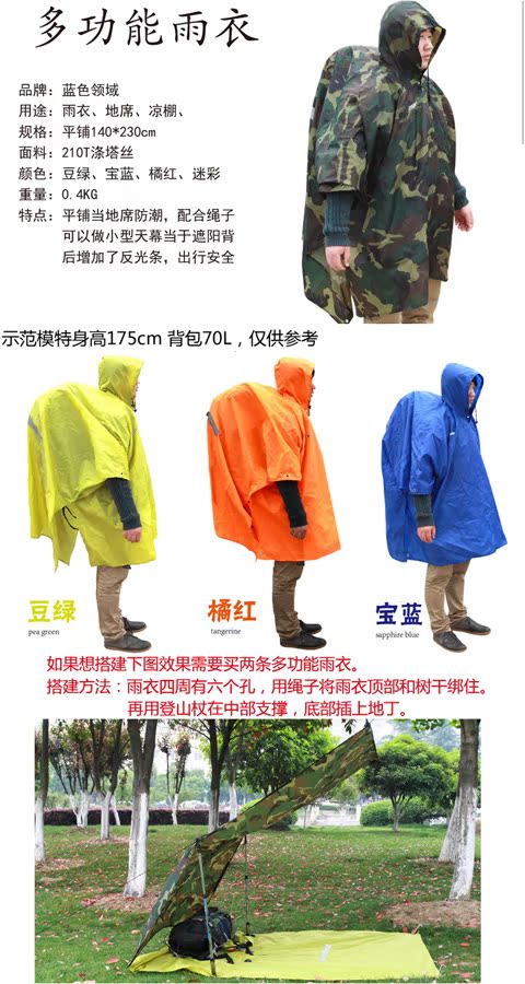 Синий универсальный дорожный дождевик, навес