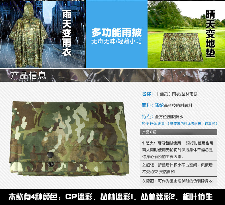 Дорожный спортивный камуфляжный светлый тонкий дождевик, навес подходит для пеших прогулок, ковер