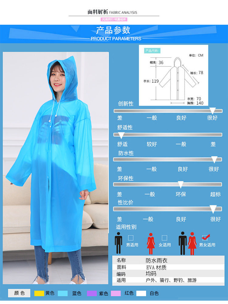 Дорожный длинный водонепроницаемый дождевик для путешествий подходит для мужчин и женщин, увеличенная толщина
