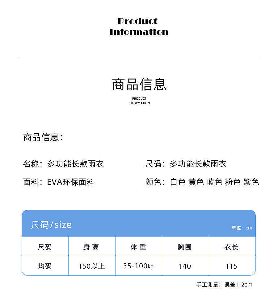 | Цвет: | [Белый] Взрослый край луча Rainwear 100G, [Розовый] взрослый подпрыгивающий дождь 100 г, [Желтый] взрослый будер дождевика 100G, [Фиолетовый] взрослый подпрыгивающий дождевика 100G, [Серый] взрослый прыгающий дождевика 100G, [Черный] Взрослый край луча Rainwear 100G, [Небо синий] взрослой будер., Белый детский дождевик, Розовый детский дождевик, Желтый детский дождевик, Лазурный детский дождевик |