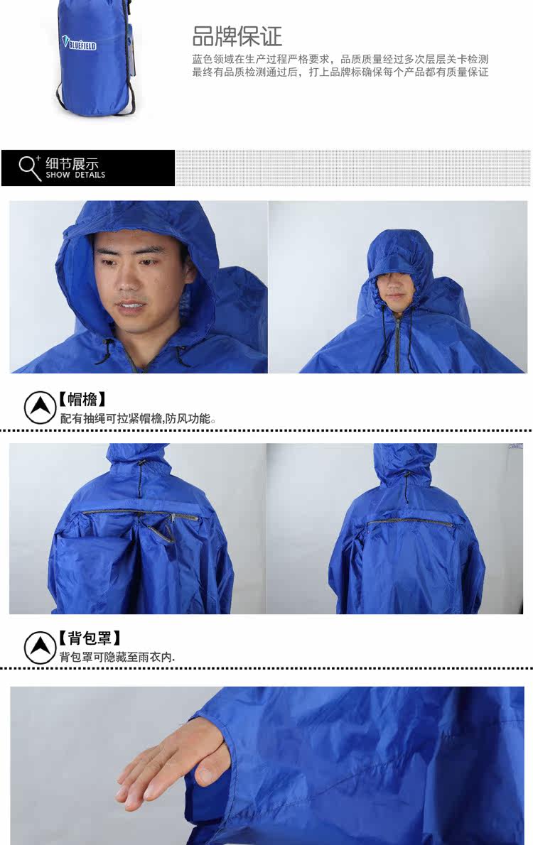 Синий дорожный альпинистский универсальный рюкзак подходит для пеших прогулок, дождевик