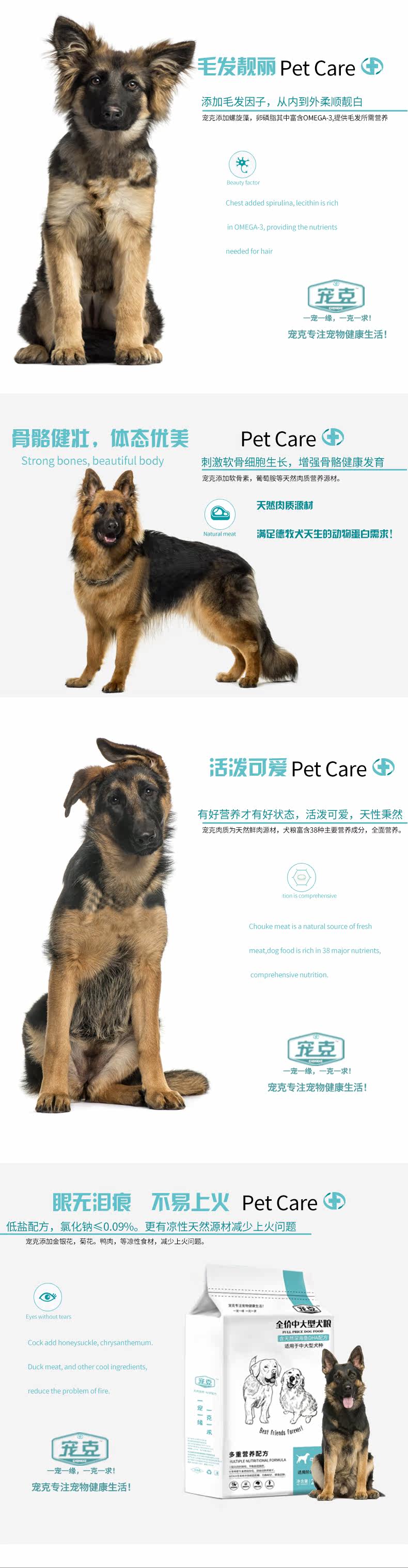 宠克 Немецкие пастырские овечьи овец стадо пастух зерно собаки средняя среда Большие собаки, красота собаки, кальций кальций, низкокадовое здоровье защитное живот.