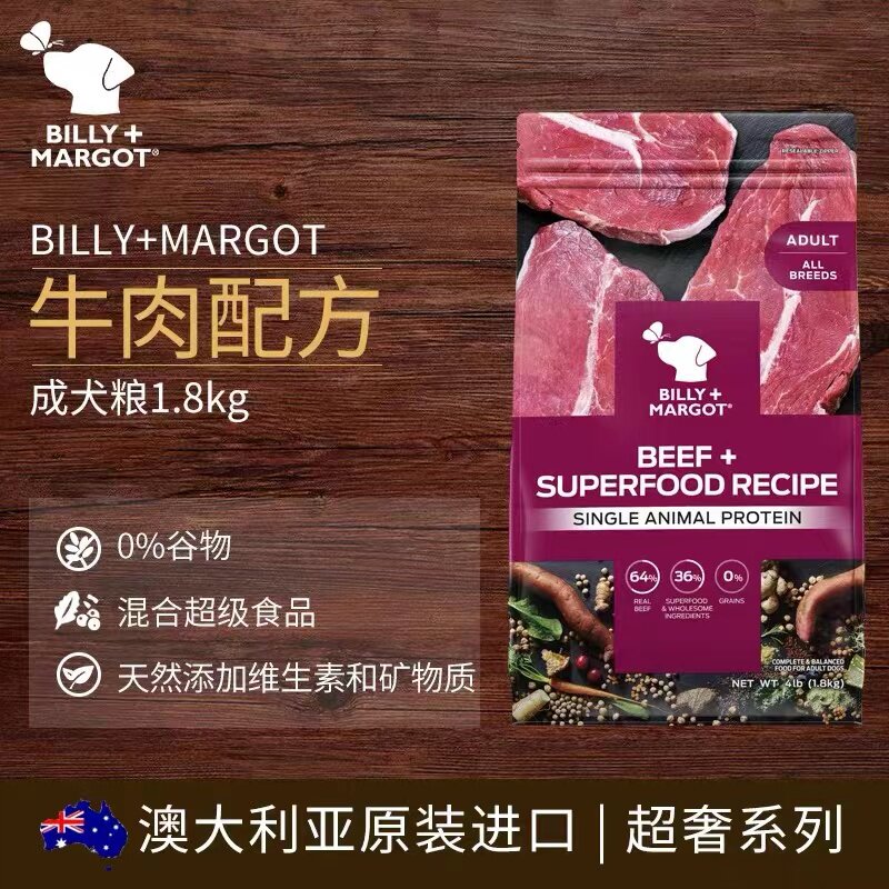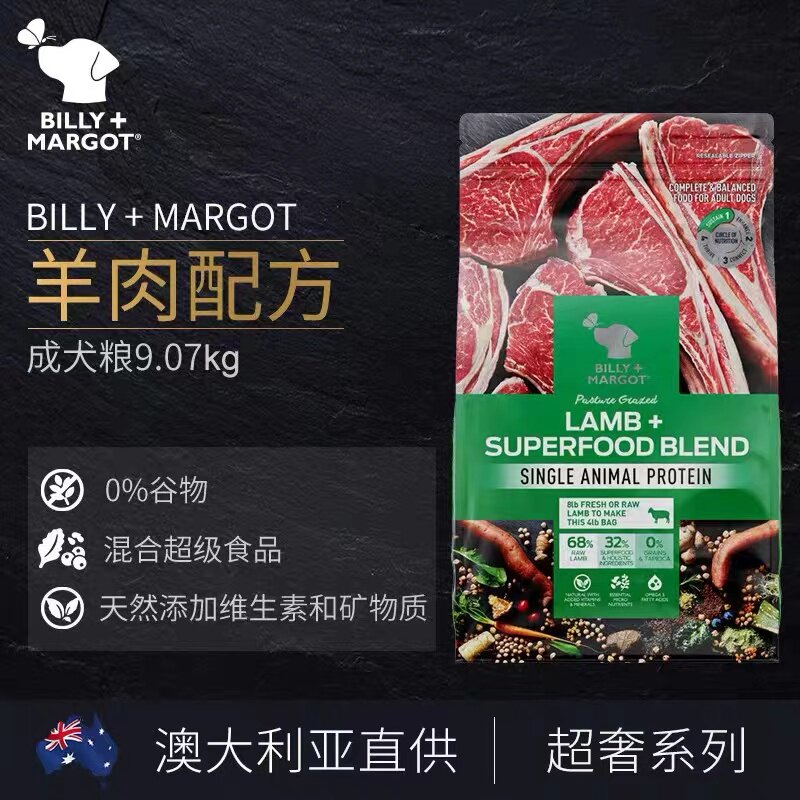 Billy Marg Dog Food Australia Импортировал биллимаргот Кенгуру, говядина, говяжий говяжий барарет, аромат лосося 9 кг.