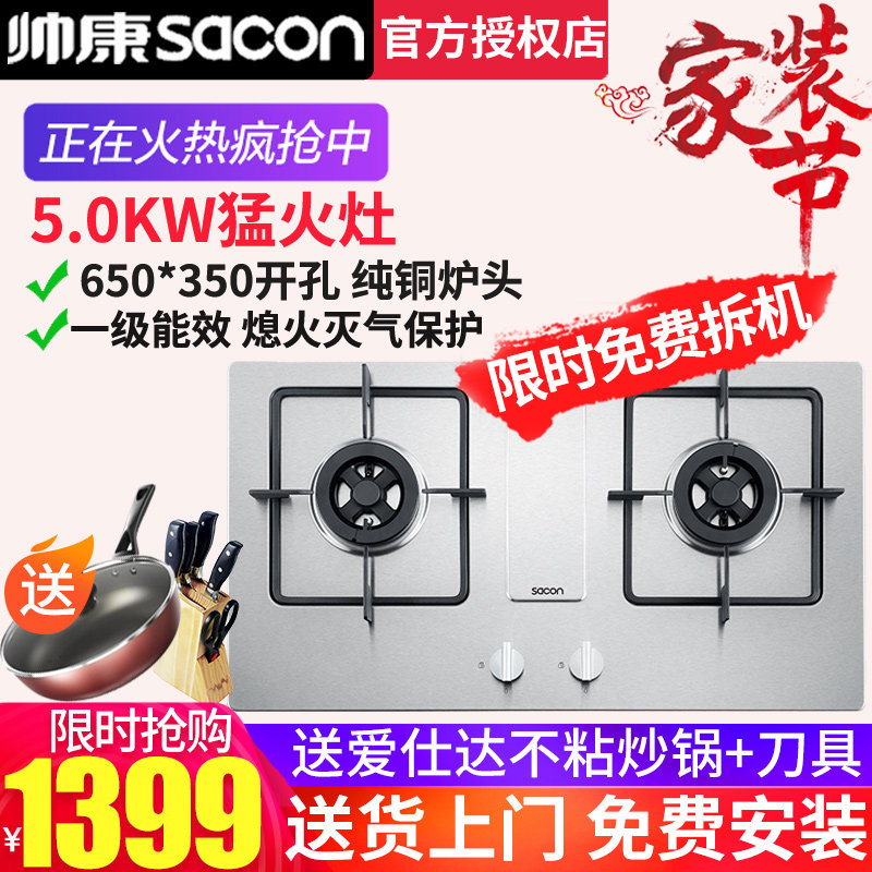 Shuaikang 68g Газовая плита 5,0 кВт двойная плита встроенная природная газа 650*350 Открытая отверстие Fierce Fire Home Плита домашняя плита