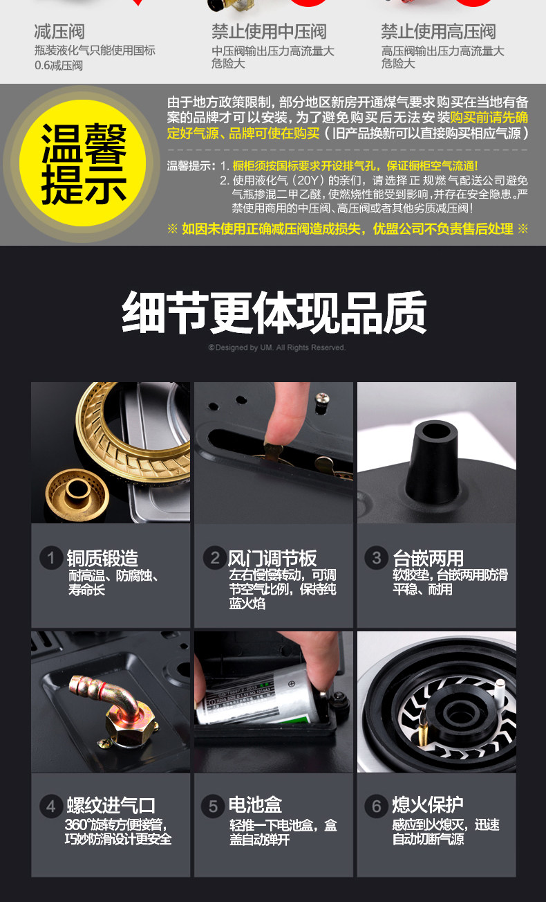 um/优盟 Газовая газовая плита Двойная плита встроенная домашняя плита природная газовая плита сжиженная газовая плита