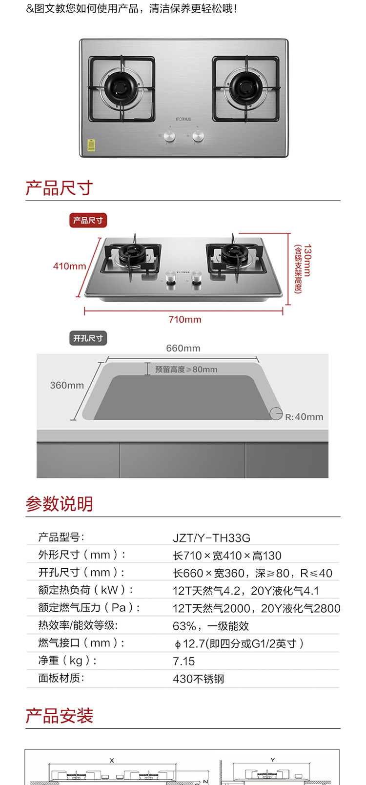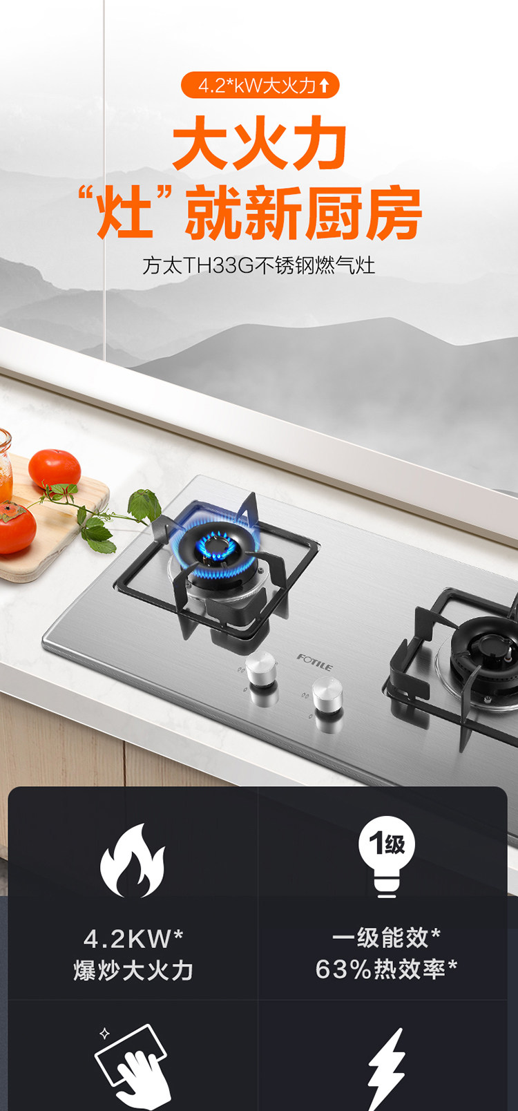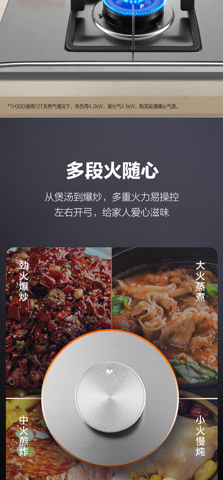 Fotile/Fangtai TH33G Печь из нержавеющей стали встроенная газовая печь 4,2 кВт. Жесткий природный газ