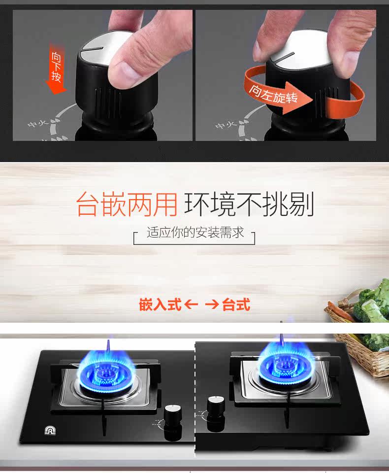 Rongsheng QP07 встроенный настольный столик с двойной плитой сжиженный газ сжиженный газовой газовой газовый газовый газовый газовый газовый газовый газовый