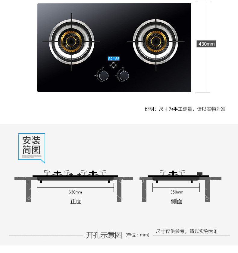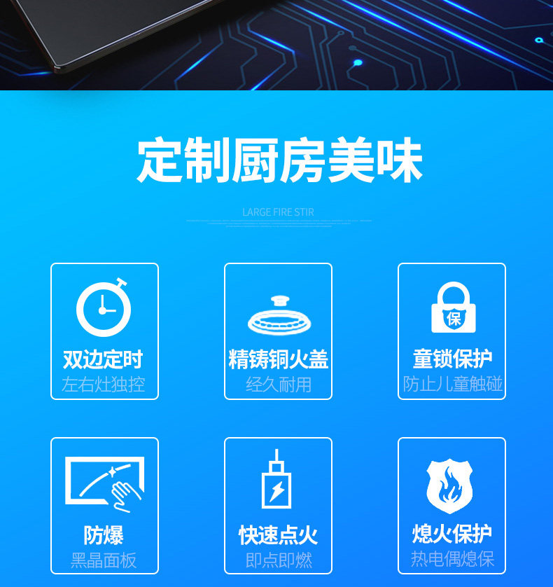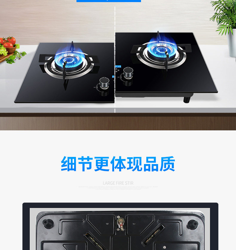 Интеллектуальная газовая плита с двойной плитой встроенная натуральная газовая плита.