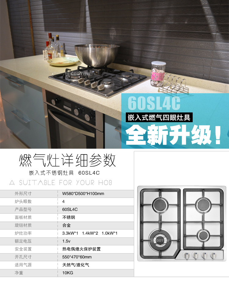 COOTAW 60SL4C Европейская стиль четырех газовая плита многоногенная газовая плита Домашняя встроенная четырехглада
