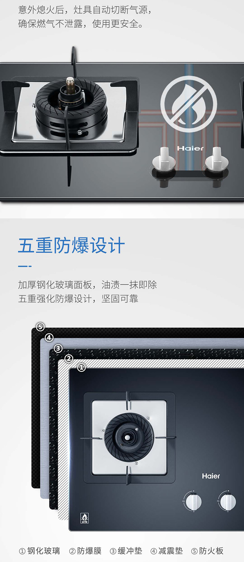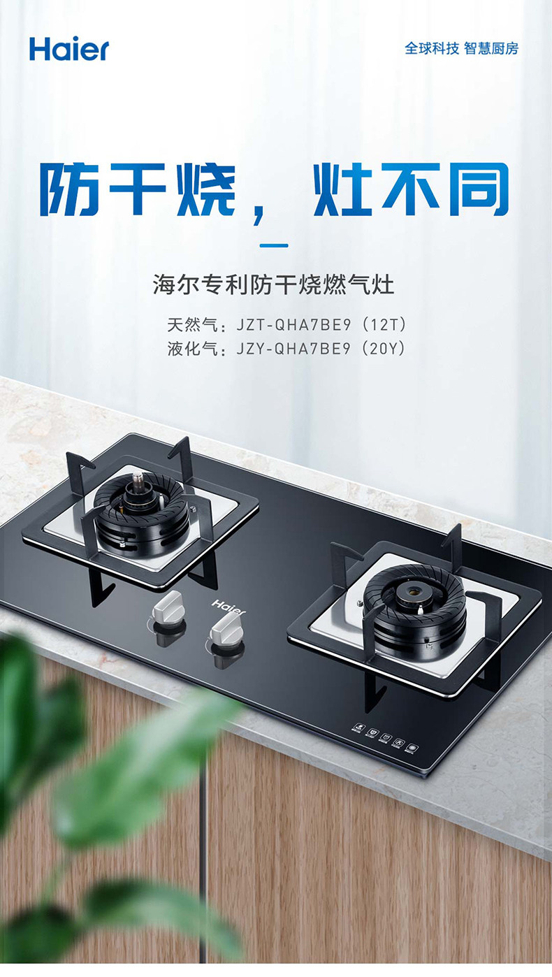 Антисужденная газовая плита Haier Двойная печь Домохозяйство Высокопожарная мощность природная газовая плита jzt-qha7be9 (12t)