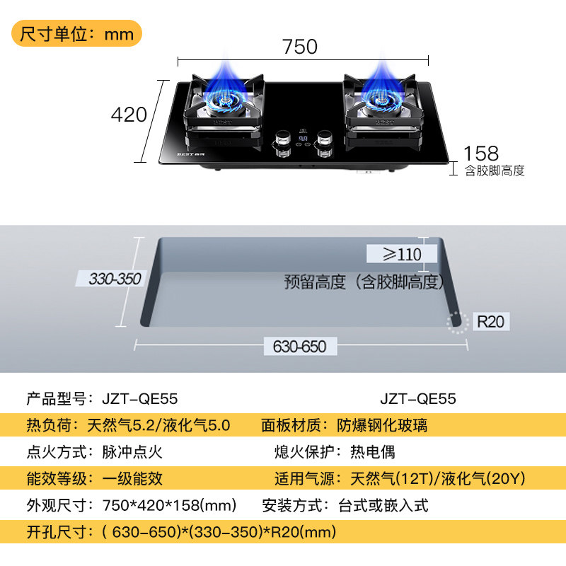 百得 QE55 ГРМ газовая плита газовая плита двойная плита Домашняя встроенная природная газовая плита Печь Сжиженный газ