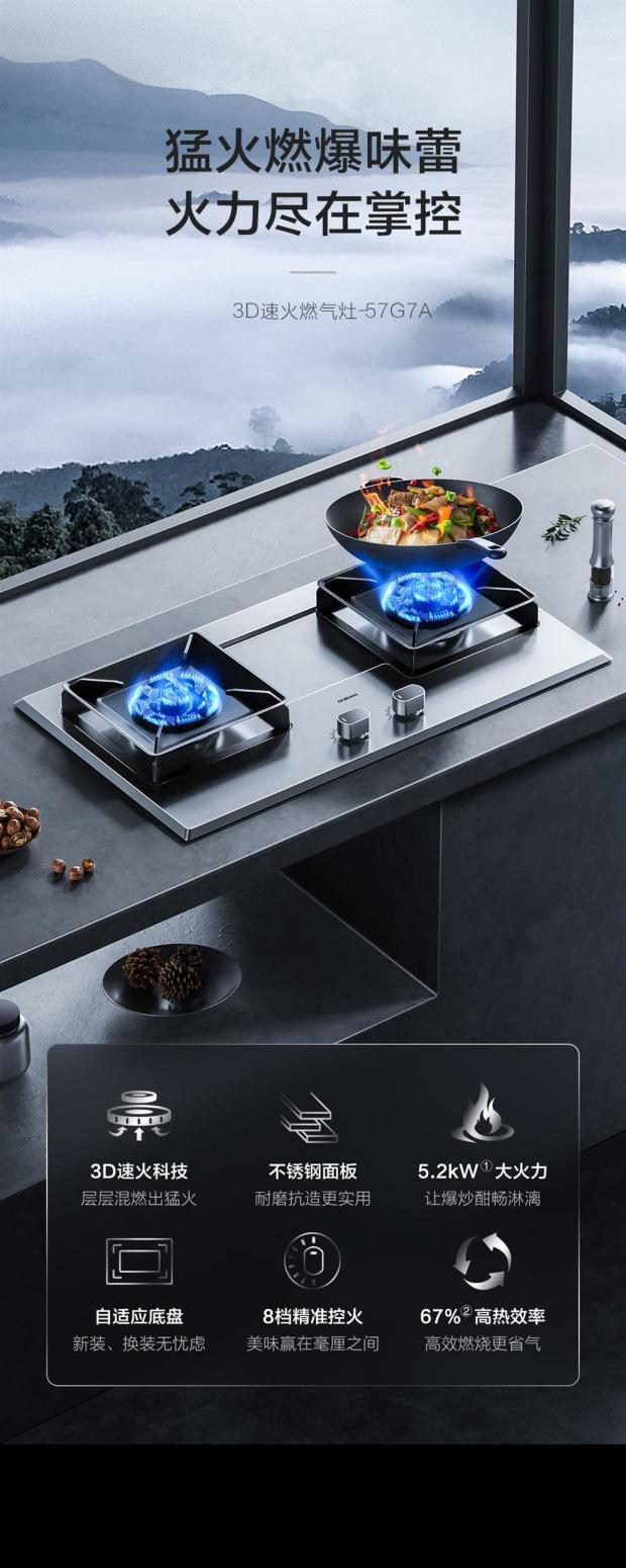 [Новый продукт First Release] Boss 57G7A Высокая огневая мощь Регулируемая газовая плита из нержавеющей стали газовой плиты