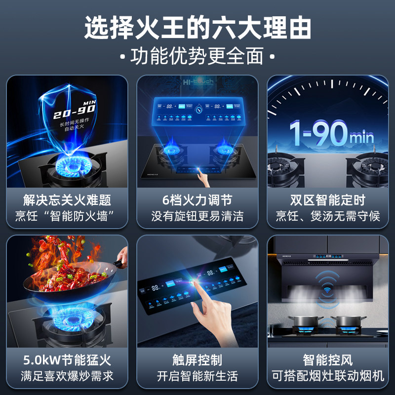 Интеллектуальная газовая плита Fire King с защитой от сухого горения, бытовая газовая плита высокой мощности, встроенная пожарная плита с таймером