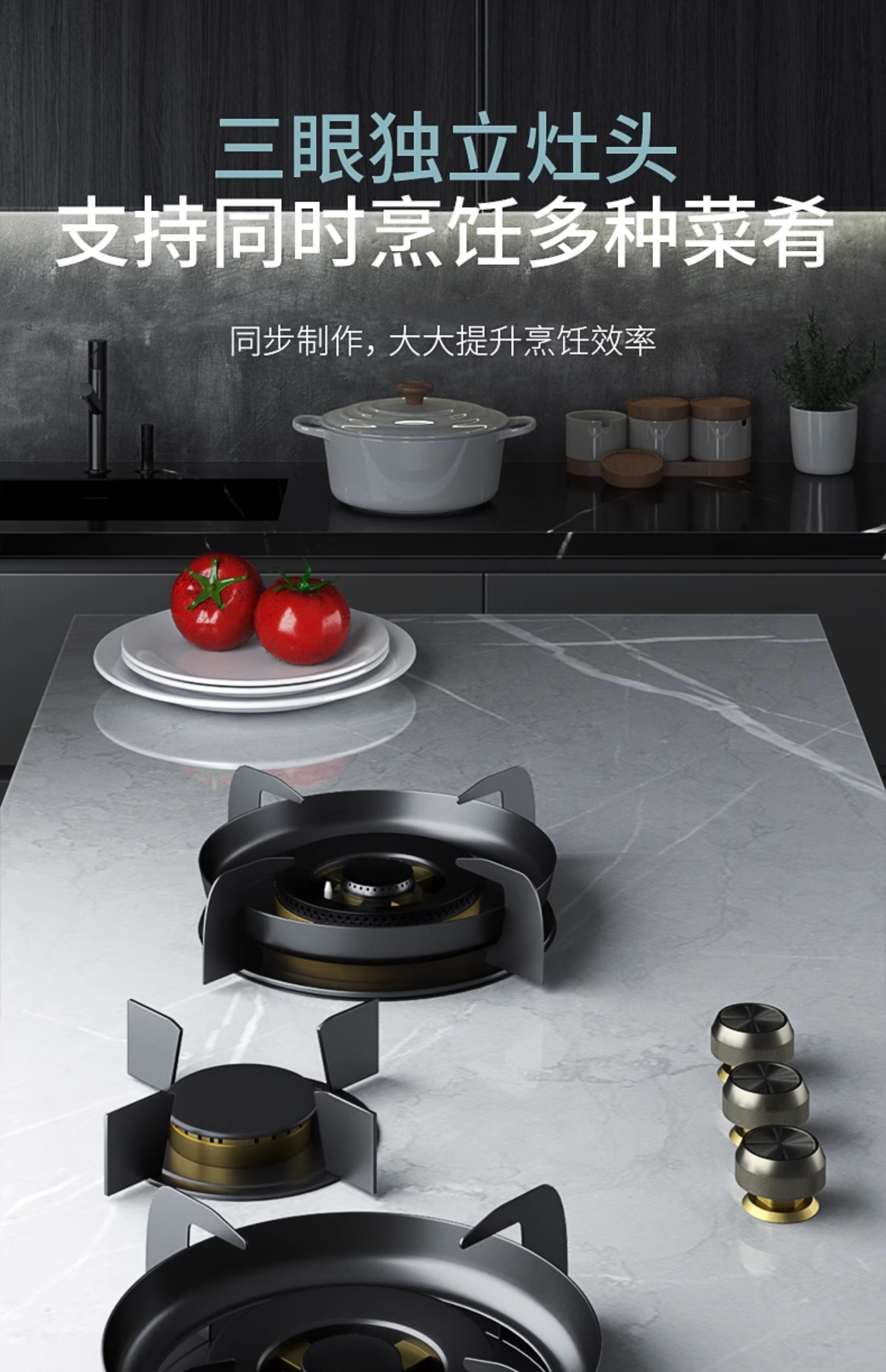 Dupont Rock Plage Встроенная скрытая газовая плита с тремя глазами Полностью встроенная газовая плита.