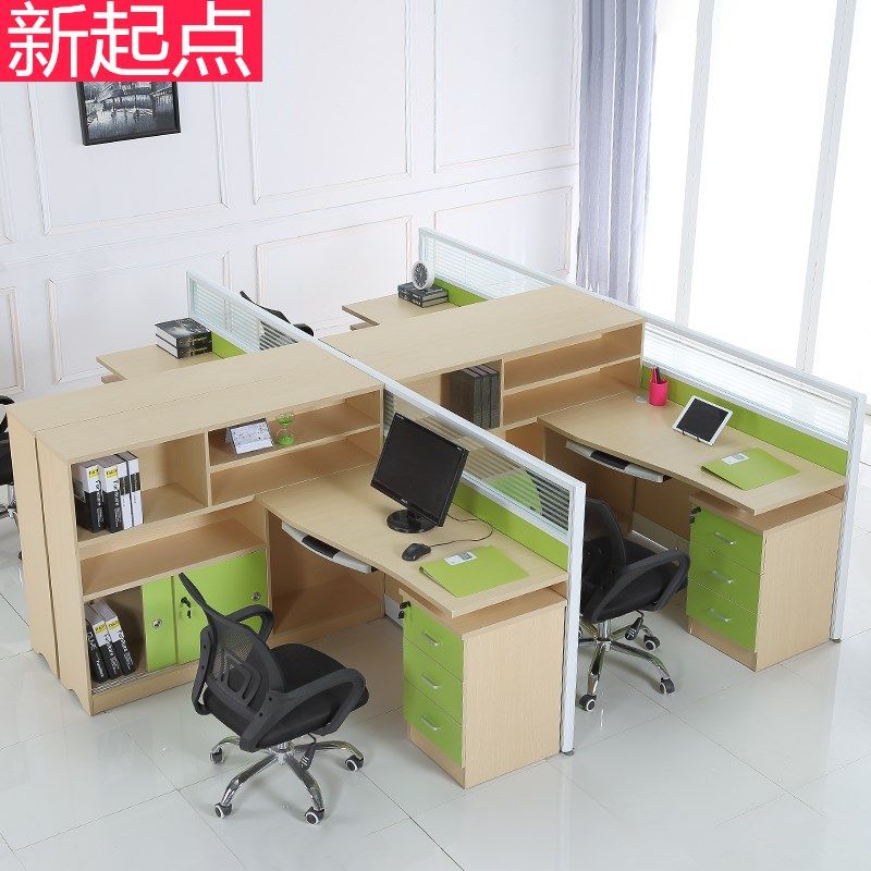 Стол работы сотрудников 4 -Pperson Office Office Card Позиция финансовая офисная таблица компьютера и комбинированная мебель стула