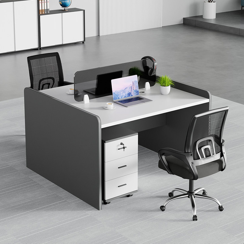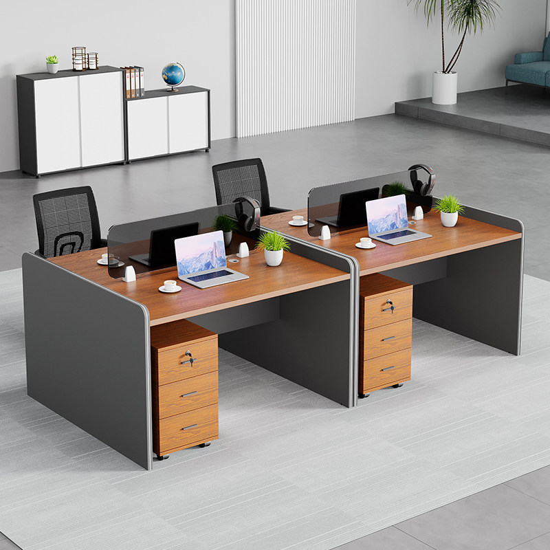 Экран офиса на стойке работников, простая современная карта, двойная 4 четыре, 6 человек, компьютерный стол и комбинация стула